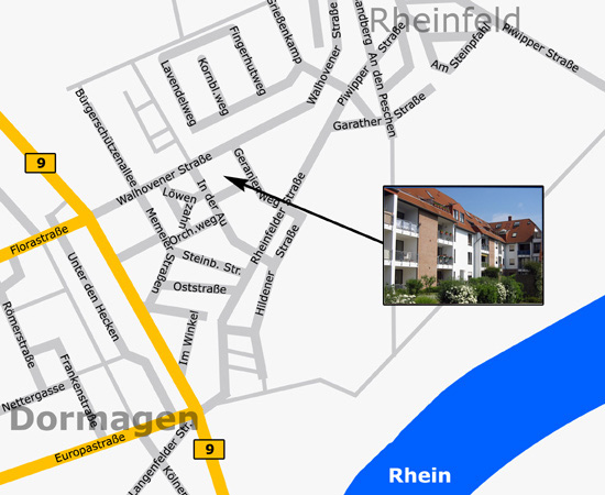 Das direkte Umfeld bietet Ihnen einen Kindergarten und eine Grundschule (50m), die attraktive Fußgängerzone Dormagens (300m), die City (1000m) mit zahlreichen Einkaufsmöglichkeiten, Arztpraxen, weiterführenden Schulen und vielfältigen Kultur- und Freizeitangeboten.